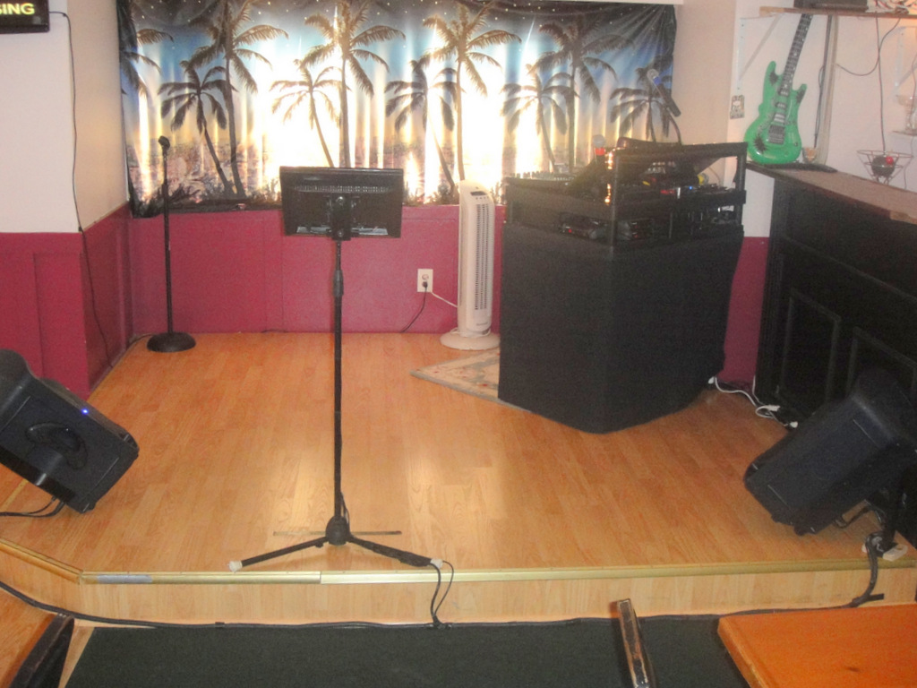 Paradigm Karaoke wrote: far end of the room away form the singers, behind the gear facing in. this way i hear the system in the room and not the singer a few feet away, and have more control of the overall sound taking the room acoustics into account. like i would do with a live band. That would be the best way to set up. Especially if you could run the cables up in the ceiling or tuck them away where no one can trip on them. I have the 2 floor monitors coming straight at me so I hear the sound real well. But back of room would be best. I play a lot of customer cd's and that would add a lot of extra steps for the singers.