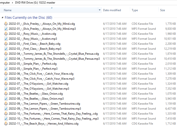 Please keep in mind that SC advertises these discs as MP3+G for easy transfer ( loading, as in software) to PC. Are the giving an inaccurate description? The GEM discs are MP3+G discs. I am not familiar with karaoke players that read PC formatted discs, but I imagine that any device that can, should be able to read the GEM discs. Here is a screen shot of the directory structure - Attachment: