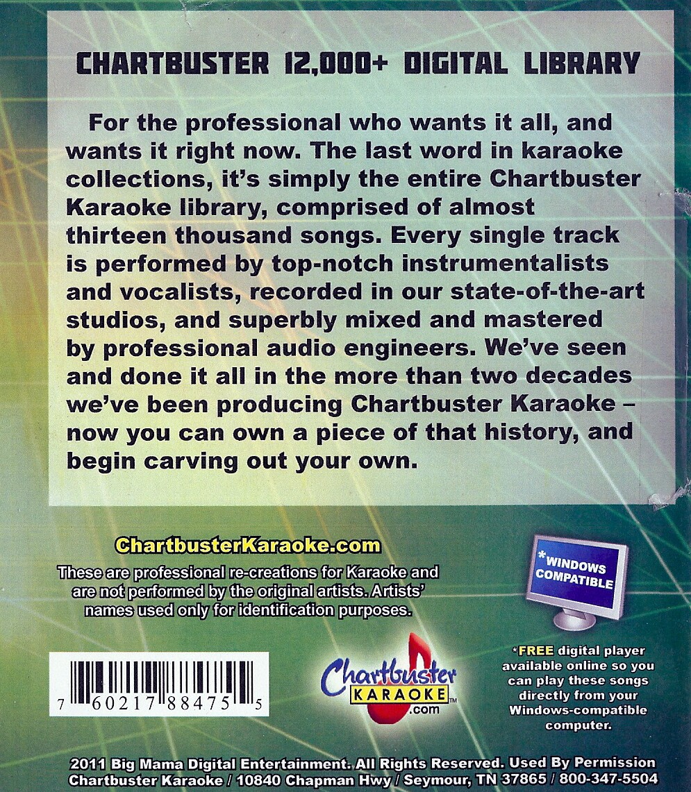 kwilsonjr wrote: Paradigm Karaoke wrote: the cert was not to prove your legality, it is the yearly fee to use CB material on a computer. that is why it needs to be renewed yearly weather you purchased new tracks or not. if you don't renew it, you can not use CB material on a computer. I have researched this thoroughly and find absolutely zero documentation stating use of the songs after purchase is subject to an annual licensing fee. What I DID find on the actual product was a statement saying that you own it. Attachment: chartbuster label.jpg in addition I specifically asked Greg about this and he confirmed once you purchase the drive, it is yours to use forever. Correct. Functionaly equivalent to purchasing the CD's. Pre-shifted and not audit required. Plus a certification to boot for whatever it may be worth now. -Chris