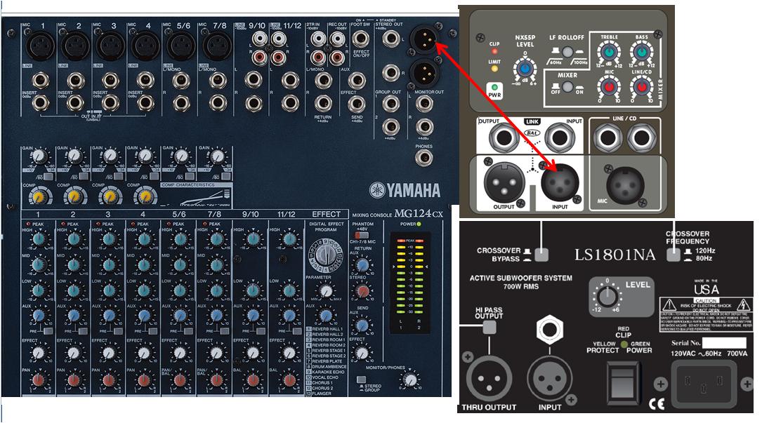 Currently I have been hooking up my stage monitor thru the aux jack (third row from the right, 2nd port down. JD are you telling me to plug m1.4" into that port or the one below? Will that work with my powered sub?