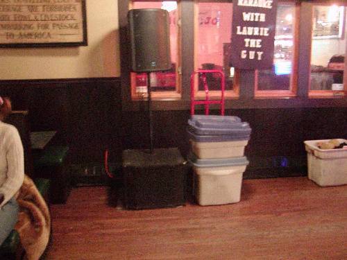 She started buying one regular a week a beer to help her with the speakers. $1.50 for a 12oz beer, and the loyal regulars would usually help her bring everything inside and hoist the heavy speakers onto the speaker stands. Same thing at the end of the night, she would give one regular a beer to help her tear down the heavy speaker stands.