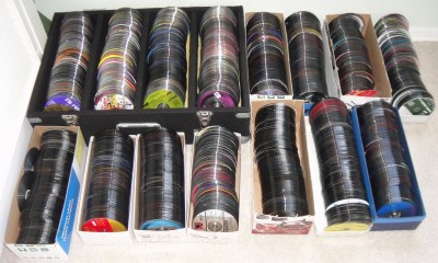 @mrmarog - I have 5 of the felt covered wood storage cases like what you have in the upper left of your picture. Those are my favorite cases and I would love to find more. I picked up all 5 of these cases along with the disc buys and can't find anything but aluminum ones on the net. I like the wood cases over the metal/plastic versions because the wood ones don't flex and come apart at the seams. But I use vinyl sleeves and write the disc number on each sleeve. Attachment: