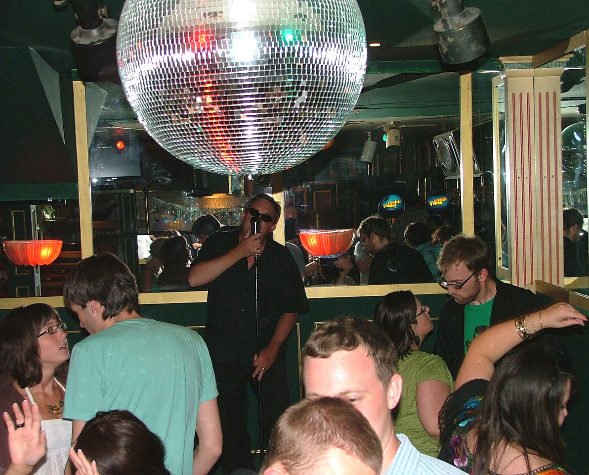 A few more pics. And YES, I am ALL DISC ALL THE TIME!  And yes I am "LEGAL", having had my SC audit conducted by Kurt Slep himself, the Oregon Investigator at the time and KJMANN observing at Kurt's hotel room near Portland International Airport during his last visit with open to public question and answer session. 500+ discs at 15 songs per disc= approx. 7500 songs titles with few repeats. Only 25+ SC discs needed. Very solid assortment to choose from. If you cant find something to sing with my selection, then there's something wrong with you. Personal store-bought discs are always encouraged! No BURNS! System: 300w Yamaha portable mixer/amp, 300w Yamaha 12 mains with stands, 3 steel base mic stands, Shure 55m Audiovox Sennhieser mics, 9" TV (soon to be upgraded to flatscreen), JVC Karaoke machine, Sony CD player for dance music. Music stand and additional cables to mic up/connect instruments for open mic applications, cable to connect laptop/devices as needed(shared DJ show applications). System MORE THAN ENOUGH to fill a typical club, parking lot, large backyard with clean, accurate, thumpin', groovin' sound! Songbook cover sign made with PRINTSHOP 6.0 (an old version). All photos shot by me. Event in photo...4th of July parking lot picnic at Northstar mental health office. Latest show....mid August in Snoqualmie, Wa at ISIS (a old school KS person) housewarming party(DJ'd from 3pm to 1am). Club pics...Grand Cafe(Just closed in July) in Portland, Ore where I DJ/KJ'd for 10 years and learned to sing Karaoke in 1996...when the ONLY MIC they had was a Shure 55M. It was Karaoke bar from 1990 to 2014. My home away from home!! And source of ALL KARAOKE GOODNESS!!