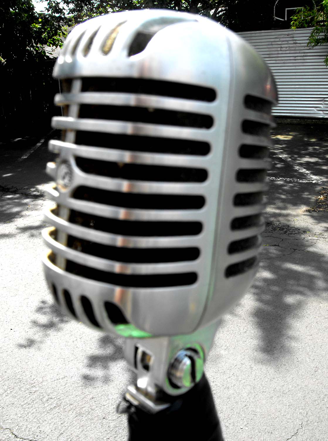 I use the SHURE 55m at all my shows. It's the ONLY MIC I will sing on. I have for over 18 years. Each new singer has to be shown how to use it. But once they try it they are HOOKED! They can get their Lady Day, Ella, Frank and Elvis on...............just like they did back in the day. They never go back to handhelds after that. I even hold "MIC TRAINING 101" to show them how..........."Now for those of you who have never even seen this kind of mic before....there is a Very SPECIFIC TECHNIQUE to singing on it..........What you do is wrap your hand around it, lean over with it and PUT SOME LOOOOOOOOOOOOOOOVE INTO THAT MIC...........THAT IS HOW YOU DO IT!!". Gets big laughs but then they all know how. Mic is mounted on stand with round metal base with push...so can be easily moved and leaned into, removed from stand and paraded around like Freddy Mercury. (Unlike the awkward and confining TRIPOD mic stands, or the ones with the twist adjuster). For the few who cant deal with the Shure, I provide a Sennheiser handheld. My DJ mic is a basic budget handheld. The Shure provides a feeling of showmanship that comes with the big Silver STAGE MIC. It makes my show UNIQUE and completely different from those who don't. I provide the choice of either and the singer a unique experience of singing on a big elegant silver stage mike. There's only two others in Portland I know of that do this.........KJ MANN (Who I introduced to Shure's) and another long time KJ in Portland. In Seattle the only KJ I know of who does is Chris Avis. (And if I remember correctly, he didn't start using Shure 55's until he came down to Portland one business trip and I showed him mine). I've been trying to convince LONNIE(Lonman) and Karen K(Ive taken my mic to her show and let all her people use it) to get Shure 55's....but they still resistant to the idea. Oh well, I'm SHURE they will see the light (reflected off the shiney chrome finish) one of these days!  Advice to KJ's: get a Shure 55 and provide your customers with that unique experience of singing on a Shure Stage mic....It may require a bit more patience teaching the newbies, but that makes for a GREAT OPPORTUNITY to provide a bit of INDIVIDUAL CUSTOMER SERVICE to EACH OF YOUR NEW CUSTOMERS, by doing so you will help to build their comfort, confidence and loyalty. Use it as an IMPORTANT show building and marketing tool! Advertise It, promote it...put it on your songbooks, fliers, showbills, song slips, photos of yourself with it, your KJ website/facebook with pics of your singers rocking out on it! Use it to build a bond that keeps them coming back to see and hang out with YOU as YOUR REGULAR FOLLOWERS......BECAUSE they want to sing on that big ol' silver mic. Not to mention building the bars clientel, sales and business. They can sing on handhelds ANYWHERE else. They are common, routine, the same old thing. But the Big Silver Mic is new, different. It looks different, it feels different, it SOUNDS different! Broaden and enhance their on-stage experiences! Be the only show around that offers something THE OTHERS DON'T!! BIG ADVANTAGE TO YOU!