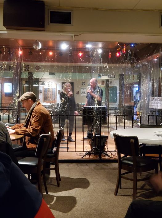 We finally got the "go ahead" for one of our regular venues after installing clear plastic screens... implementing mask and social distancing protocols, limiting the number of attendees, and other requirements from the local health authority. At just 15 singers, it was not as big a crowd as I had hoped. This is the club where we normally had at least 35 singers, and at least that many non-singers.. But it was a whole lot better than sitting at home with the boob-tube. It sure felt great to be back. Here is the first couple to take the floor for the initial mic check. Attachment: