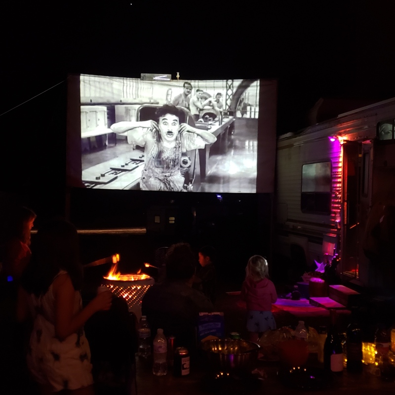 I work part time as a campground host at a campground, and we show movies on the projector from time to time. Just a small group of employees, not the general public. Attached are a couple of pics of the setup so you get the idea. In the past at another location I've done karaoke with a PA, mixer, compressor and wired and wireless mics, which was great, but it's a lot of setup and is a bit loud for this environment. Then recently someone gave me one of these $30 wireless bluetooth karaoke mics with built-in speakers: https://www.amazon.com/dp/B071SGMQ7VWhile it's obviously lacking compared to a full setup, it was enough to get people singing. Surprisingly much! Full on howling around the campfire while reading the karaoke from youtube on a phone. So I was thinking that in the COVID era these mics are a nice low key way to have an easy campfire-singalong style karaoke party, since they're cheap enough to just get a bunch of them so people can use the same mic all night, or share with their partner. And it's also a nice way to keep the volume down. And we're outdoors, socially distanced, and not sharing equipment. It would be nice to get the music playing from all the mics at once though, which is where I'm currently stumped. I know I can broadcast to a single speaker, and I might do that as well, but I'm thinking that the distributed sound source (the speakers in each mic) might make it so we can have quieter music volume overall, which is a big factor here. So far I'm thinking something like this: - connect a headphone distribution amp to the output from my laptop. Maybe this one (alternative suggestions invited, would be nice to find one with 1/8" outputs): https://www.amazon.com/Knox-Four-Channe ... B07GXF5WVP- connect a bluetooth transmitter to each output from the distribution amp. These are pretty well reviewed and can broadcast to two mics simultaneously: https://us.amazon.com/Nulaxy-Bluetooth- ... B07S2912VVSure would be nice to find a bluetooth transmitter that can feed more than 2 mics at once, but I don't see any. I don't imagine anyone knows of one? And this BT transmitter has an 1/8" output as well, so I could conceivably just daisy chain multiple BT transmitters and skip the headphone DA... Might be asking for gremlin trouble though. - and I can of course boost the music volume with regular BT speakers, but for this setup just the mics might be enough. I'm wondering if anyone has any ideas for how to improve the system? Keeping in mind that it's just a goofy little low volume campfire setup. Any other mics you think I should be considering? And what are people's thoughts about spraying these mics with sprayable hand sanitizer. As a shot in the dark, do you think that would harm the mic? Maybe wipes would work better? Note that I'm not talking about for swapping mics during the night, I'm talking about at the end of the night. People would use the same mic all night. I see a few "mic sanitizer" products on Amazon, I wonder how it differs from simple hand sanitizer. And hopefully that BT transmitter automatically reconnects with the mics, and lets me use 4 of them to pair with 8 mics (no frequency conflicts etc). Thanks for any help!