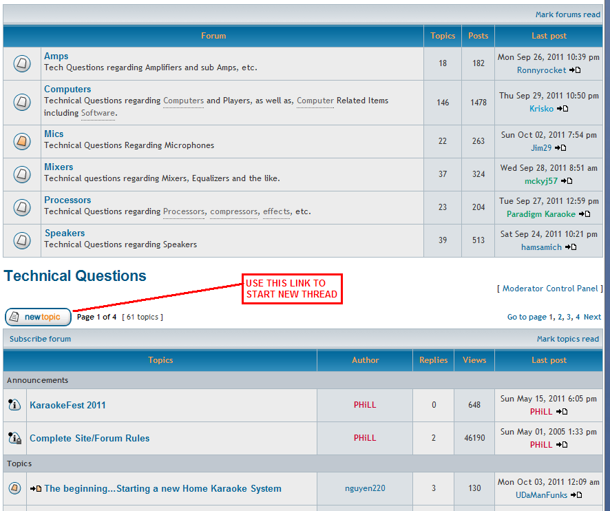 PHiLL wrote: 1) You can post a thread (start new topic) in the Technical Discussions forum.