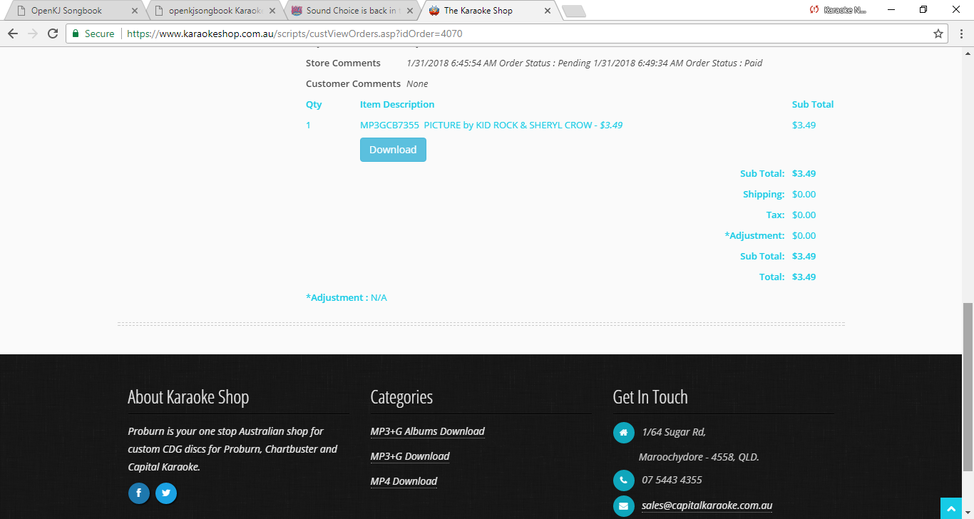 cousinvinnie wrote: Download MP3G files from Capital Karaoke & Chartbuster Karaoke. We have a dedicated download site where you can download them instantly - http://www.karaokeshop.com.auWow! they sell Chartbuster collection on hard drive or Chartbuster Downloads, Wow! Even Zoom. Sounds like another tricerasoft kind of shop. They sell full libraries of songs from different manufacturers. I'm gonna send them an email to see if I can buy the complete "Sybersound collection in mp3+g format" Except they do not sell downloads to the US, last time I tried to buy a physical disc from there, they said not available to your geographic location - but it let me get all the way to the checkout stage before telling me so.