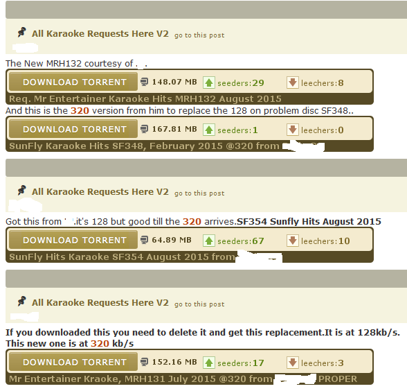 Paradigm Karaoke wrote: the top sharing karaoke on the top pirate site (i went down the first page for the ones that has seeds)....192k. the most RECENTLY uploaded collections (i went down the first page and checked them all) 192k every one of those was ripped to the preferred bitrate of the pirates who share these files. do they care about 320k? no, or they would have ripped them to that bitrate to begin with. Completely anecdotal. I went to the mall and didn't find any Porche's. Therefor people dislike Porche's. The reason you see so many 192k's is because that was the format of choice many years ago and those files are still being passed around. But this doesnt show a preference for ripping. If you were to re-rip ANY of those collections at higher bitrates, they would snatched be up. If you truly believe that quality doesnt matter (and I don't think you really do. I think you took offense to my earlier post about people with seething anger and somehow thought that meant you), put some 320k songs up and see what happens. Hey, you wont get in trouble for sharing because nobody will want them and they will just sit there.  Paradigm Karaoke wrote: and just to play along....the top shared movie right now is "straight outta compton" the top shared seed is at 720P with 5124 seeders (Sigh). With so much out there, this is super easy to Cherry Pick. BTW the top seeder has over 17000! Not 5124. And it is "Age of Ultron" @1080i. There are multiple versions at 720p, 480p and even lower for mobile devices. Why didn't they take those? Quality doesnt matter! Paradigm Karaoke wrote: the highest quality is at 4K (4x 1080P resolution, the best on the market) and it has 1 seeder What you have proven here, is that everyone doesnt have a 4K TV.
