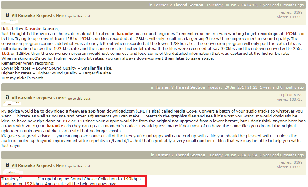 Saying there is no demand is a fallacy (and also false......but one thing at a time). 1) The ONLY way anything can be pirated is to make copies of it available. 2) The GEM series is not online (that I have ever found) so it can't be pirated that way. 3) The only way to prove that it would be pirated online would be for it to appear online. Something which no one seems to have done. So Chip gets to sit back in a perfectly defensible position because there is no way to prove his "no demand" theory wrong. Except....... If no one wants to pirate higher quality versions of songs that have been out for years, why are higher quality versions of "oldies" available on Torrent and iRC sites? Why are there low bit rate and high bit rate versions of karaoke tracks on the pirate sites? I will chalk this up to multiple pirates ripping at different bit rates over time. Not necessarily demand driven and no way to prove that it is. However, there seems to be a trend for older karaoke tracks that were ripped at low bit rates to be re-ripped at higher bit rates and placed online. It isn't a flood my any means, but it is happening. One example - Attachment: