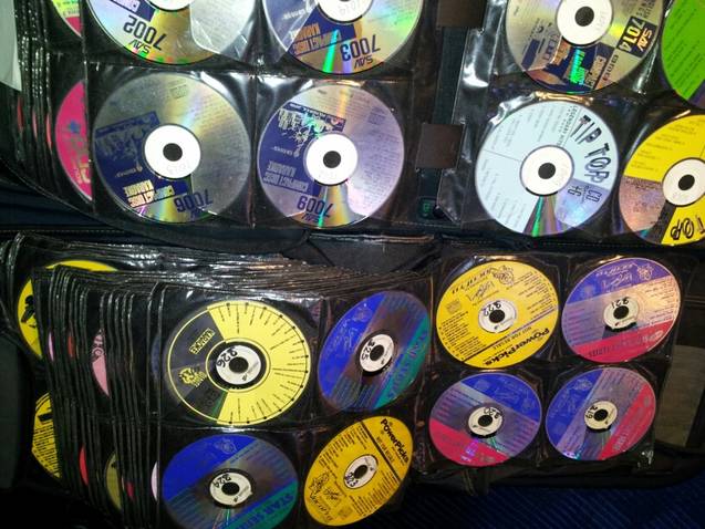 example of some disc cases....each contains over 320 cdgs, 5 seperate cases...3 english 1 spanish 1 foundations and bricks........these are just examples...inquiring minds want to know. Oh yeah as you can clearly see, all my cdg's are labeled and are sequenced in my books from DK001 to present... BTW this was taken by my cell phone tonight at my gig...fyi...although some may discredit me..... Timberlea i'msure you remember me from when you first started posting years ago, you were a newbie then, i already had alot of years on you by then......