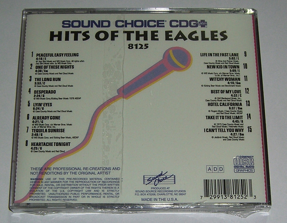 Eagles - Peaceful Easy Feeling Eagles - One Of These Nights Eagles - The Long Run Eagles - Desperado Eagles - Lyin’ Eyes Eagles - Already Gone Eagles - Tequila Sunrise Eagles - Heartache Tonight Eagles - Life In The Fast Lane Eagles - New Kid In Town Eagles - Witchy Woman Eagles - Best Of My Love Eagles - Hotel California Eagles - Take It To The Limit Eagles - I Can’t Tell You Why http://www.ebay.com/itm/8125-Soundchoic ... 1c440ab468