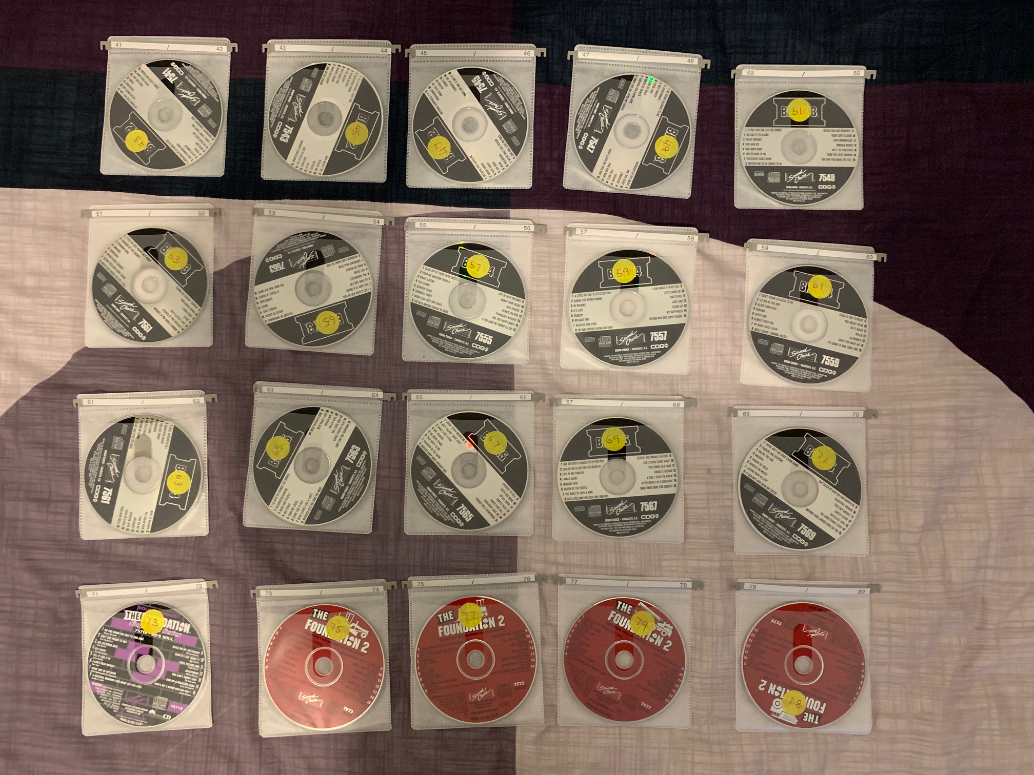 Total of 101 discs, SC7501 - SC7600 and SC8093. 15 songs per disc so 1515 in total.