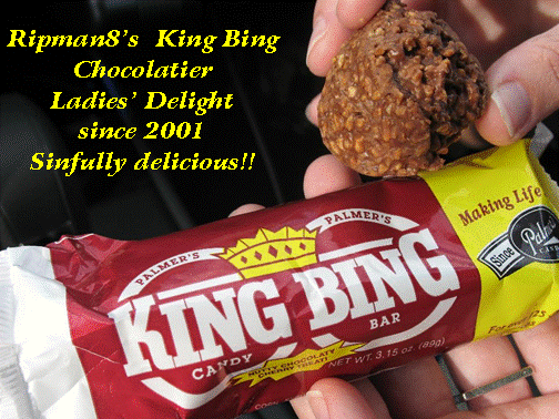 Brian A wrote: johnny reverb wrote: .......on the other hand, if everyone goes around calling you King Bing......especially the chicks.....  Too much unsolicited information from you two!  Actually, j.r. when you mention King Bing to the chicks this is what they have in mind. btw, what is that round brown thingy she's holding???  (thanks for being a good sport, ripman). Attachment: KingBing.gif Discovered this candy bar a couple years ago after I already had my business name. By the way I run the two words together. My business name used to be KingBingKaraoke until I expanded into DJing. And yes, many people including chicks call me KingBing! They know their place!