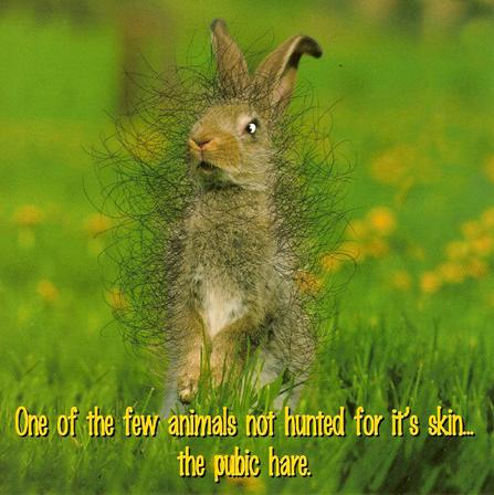 jdmeister @ Thu Jun 12, 2008 7:13 am wrote: knightshow @ Thu Jun 12, 2008 3:50 am wrote: Babs @ Wed Jun 11, 2008 12:21 pm wrote: Looks like a bad hair day for me. I think that's my long lost sister in fact.  more like a bad HARE day!  ! No such thing as a bad pubic hare..