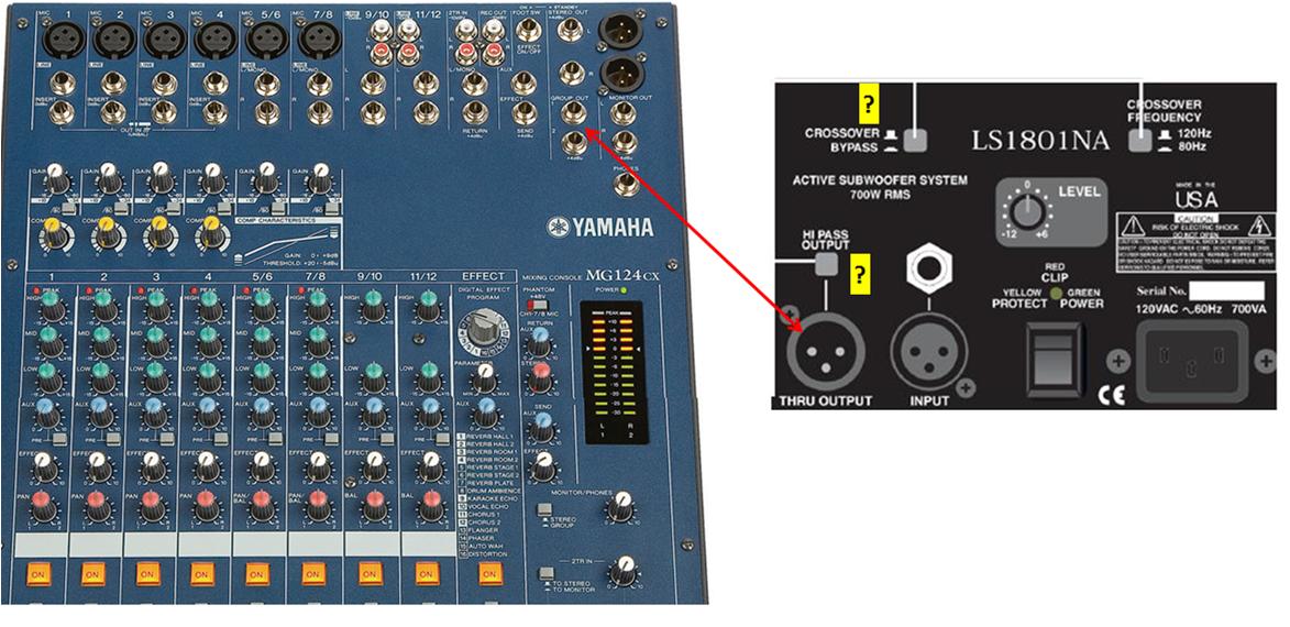 Quote: Currently I have been hooking up my stage monitor thru the aux jack (third row from the right, 2nd port down. JD are you telling me to plug m1.4" into that port or the one below? Will that work with my powered sub? Yes, I was suggesting that you use the "AUX" to send the bass signal and yes that would work very well. Apparently you are already using that send for monitors. To bad Yamaha didn't see fit to offer more AUX sends on that board. One thing I learned early in the buisiness was you can never have to many Aux's. In any case we have to play with the cards we are dealt. There may be another option in your case. Run an experiment with your board and see if you can engage both the "ST" and "GROUP 1/2" buttons on your music channel. If it allows you to send a signal to both at the same time then you should be able to control the volume of your sub using the " Group 1/2" fader and sending the sub it's signal from the "Group 1 or 2" output jacks. If the experiment is a success the remainder of your original signal path can remain intact. Sometimes being a sound tech involves a little bit of imagination. Keep us posted and good luck. Quote: This is better than hacking something up