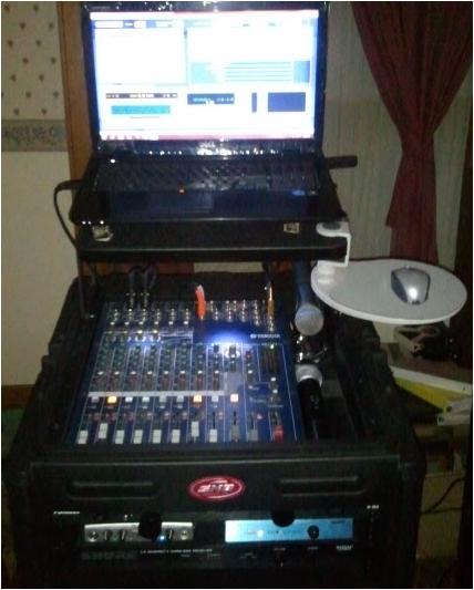 I'll post some pics Friday night. Curious how this turned out....where's the pics? //////////////////////////////////////////////////////////////////// Sorry Hiteck. I'll try to take some pics tomorrow night. I've been sick. It turned out very good. The only thing I have changed since my post above is to replace the gatorade lids with velecroed 1" painted black wood blocks. Keeps the laptop from sliding and helps keep the laptop cool. Had to get used to the change, did a gig sat night and while adding transition music in Compuhost, I accidentally hit the clear button instead of add and deleted everything I had added. But able to add and change music quicker with the mouse.