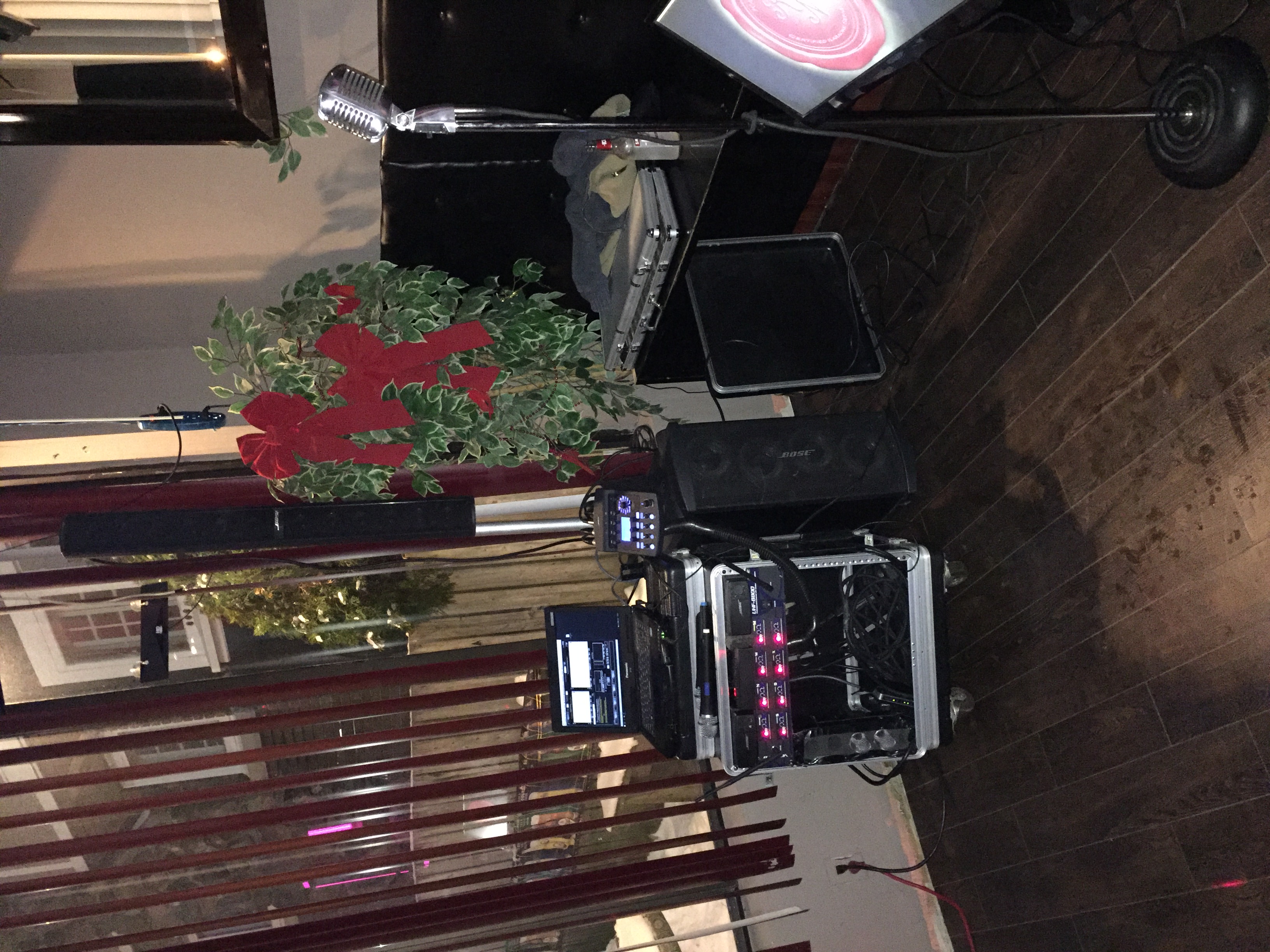 Here's a pic of my new setup. I took it last night when I tested it out at an old bar, which I may be doing on Friday nights. Because it was only a test to see if the new speaker system would work in a small bar atmosphere, which it passed with flying colors, we didn't promote the event. The next show will be promoted by both myself and the owner. But the few people who were there were impressed with the sound quality and the lack of need for a second speaker. I am probably going to get one down the line for larger venues but it was enough for the bar it was in.