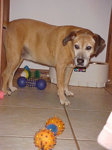 We have been real lucky too, even tho only Sophie has binkys (alpha dog & all that); only Jacob has ever torn anything up (unless you count the scratching on the door and the digging in the backyard, which we don't)  . Jacob has torn up the towel we left out so that we could wipe them off when they come inside and a blanket that had been in the garage under the Mustang while Richard and our neighbor worked on it.