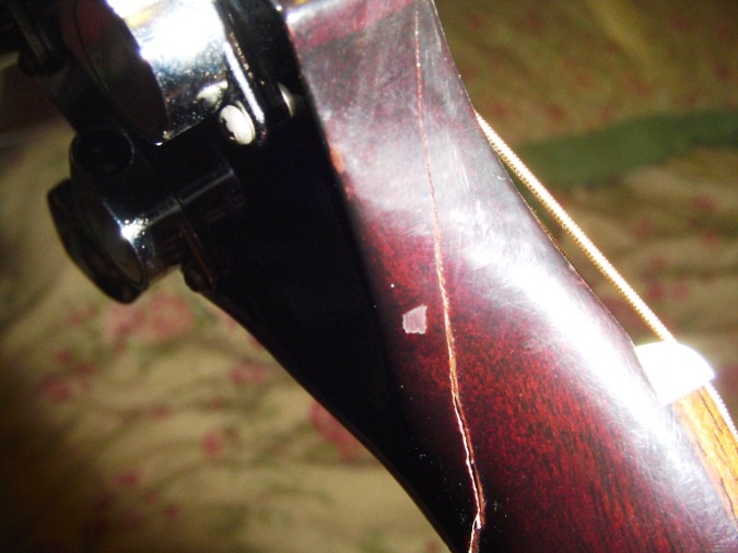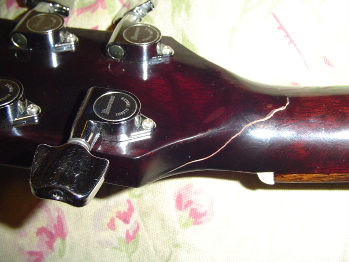 A couple weekends ago, after having quite a few people at my house... I found the neck had gotten broken somehow. Silly me, left it propped rather than in it's stand or hung up, but..... my own kids are careful around instruments, and it WAS in my music room. Obviously, someone bumped into it with enough pressure to crack it. No confessions so far, but I honestly think between my bytching and crying..... anyone who knows they did it is most likely scared to death to tell me. Seriously, I just quit crying, like..... yesterday.