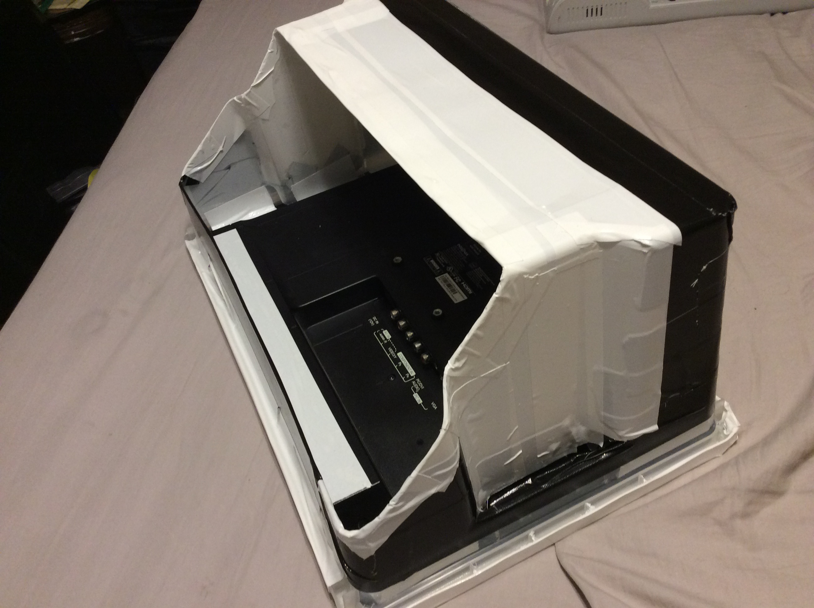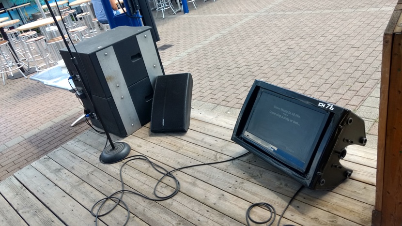 Alan B wrote: karaokeniagarafalls wrote: Due to heavy rain, the stage display kinda' got fried the other day and couldn't believe the prices when I went shopping for one. So I put together a do-it-yourself project using an old speaker cabinet along with a 24" led tv and duck tape. Wah Lah!