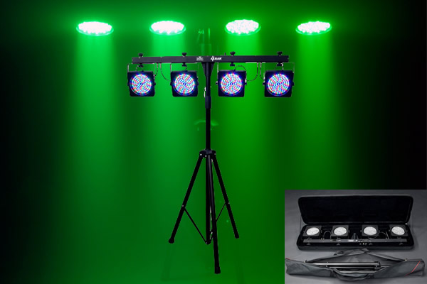 In my not so humble opinion, buy the Chauvet 4-BAR LED setup for your Dad. I use it and love it. He will as well.