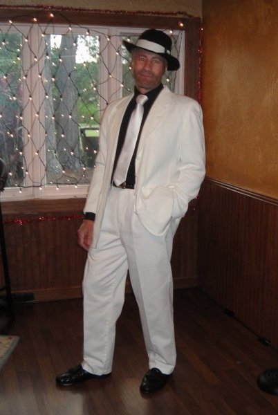We had a "Howling" good time on Halloween Eve. There were 30+ singers and only 15-20% came in costume. My wife and I decided late to dress for the occasion, because the owners didn't want to spend any money on decorations. I'm glad that we did a little something. I also didn't have much time to grow my gangster beard so I used some theater make up and darkened the stubble. Attachment: Attachment: