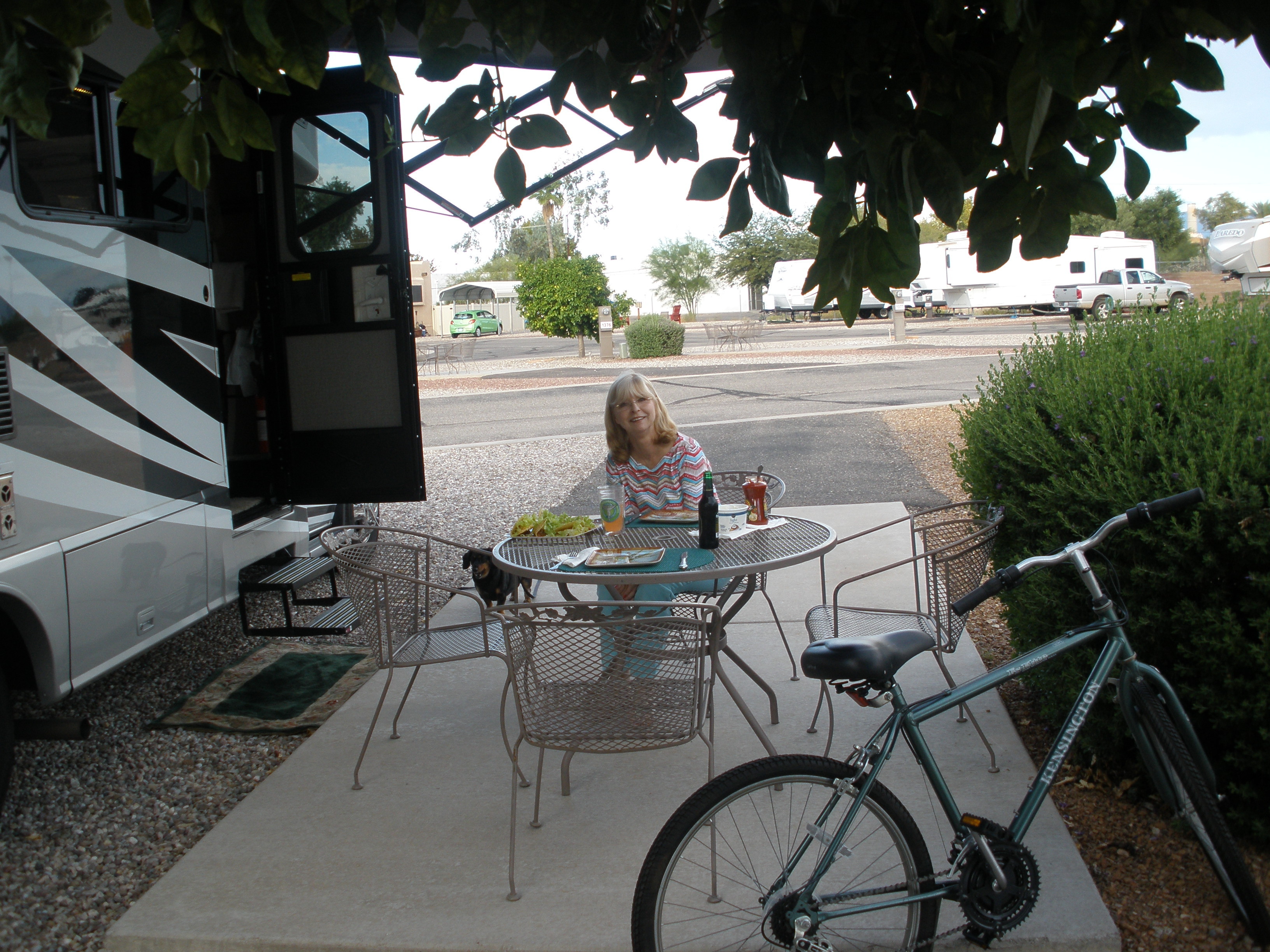 I am sitting outside my RV right now drinking a Spaten Optimator in perfect 80 degree weather in Tuscon, AZ. I am at Lazy Days Rv Park.... it is absolutely wonderful. I rode my bike for the first time in 13 years tonight and am I out of shape. I am sure laying on my back for the entire year of 2015 didn't help either.