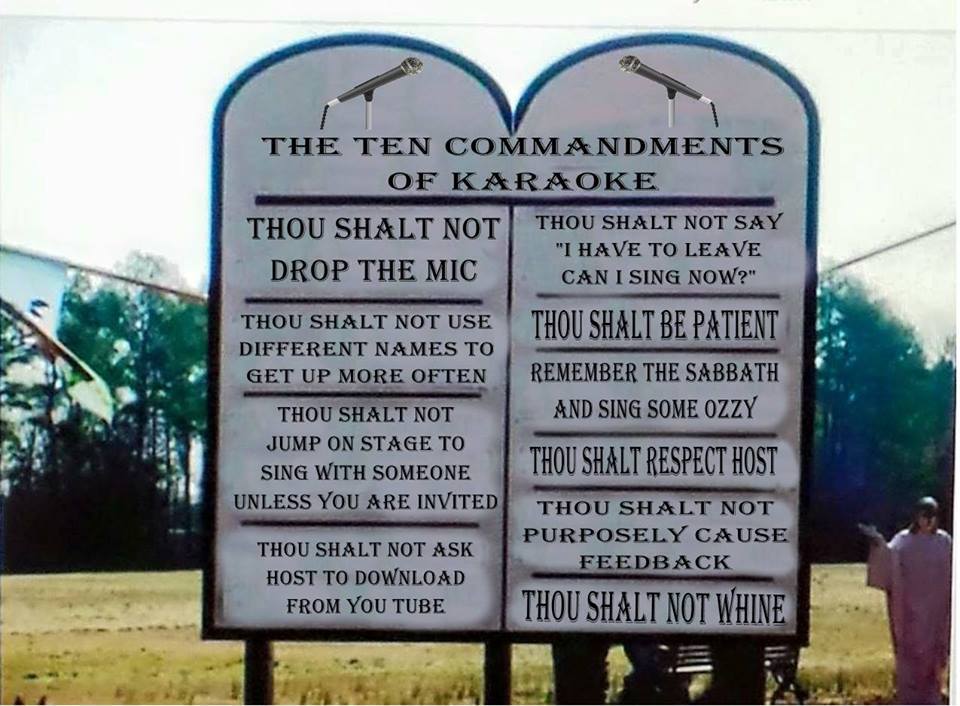 | The 10 Commandments of KARAOKE https://www.karaokescene.com/forums/viewtopic.php?f=1&t=39503 |
