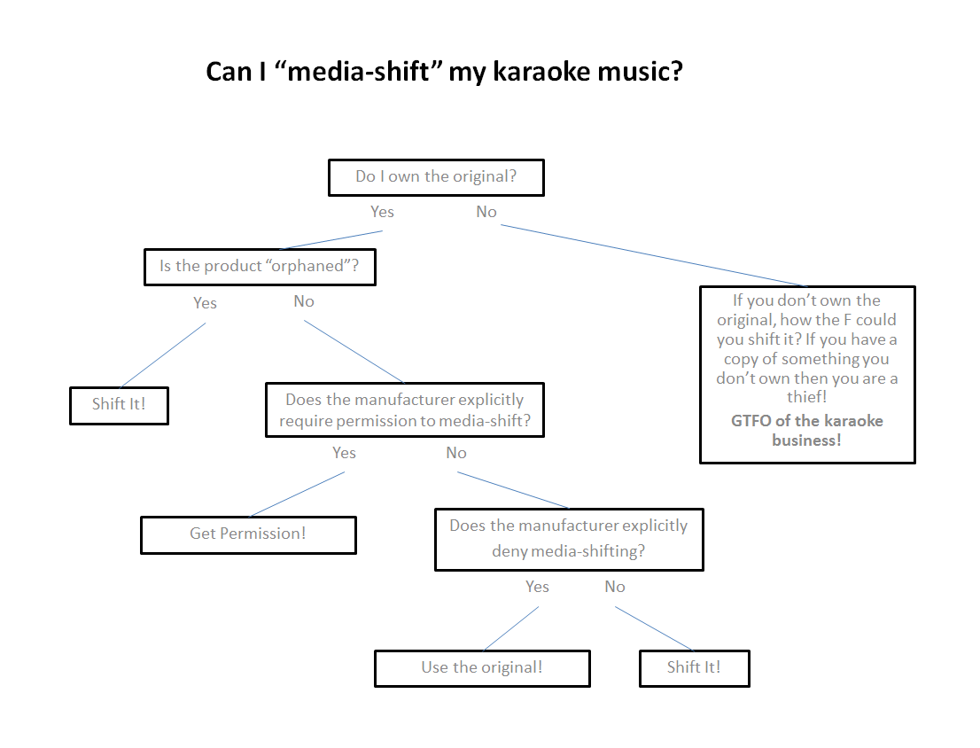Sorry but I agree with Chris' flowchart because I believe in the ALL RIGHTS reserved as stated on either the disc or the jewel case. Those that are enforcing their rights are well with their rights to do so.