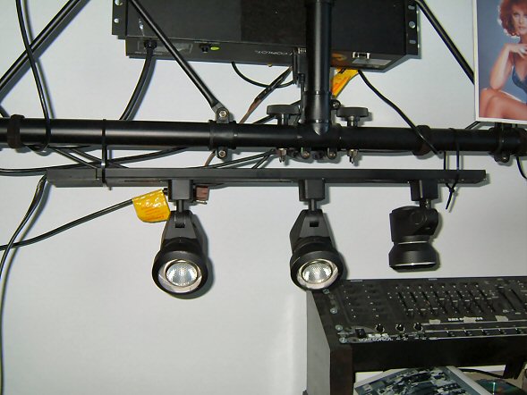 Also, notice the 3 lights hanging down... There make a great "Rain" light effect. It's a small section of track lighting. I put a plug on it and away we go.